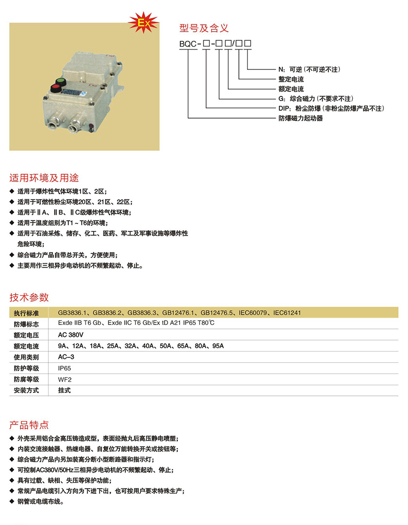 BQC系列防爆磁力起动器(IIB、IIC)