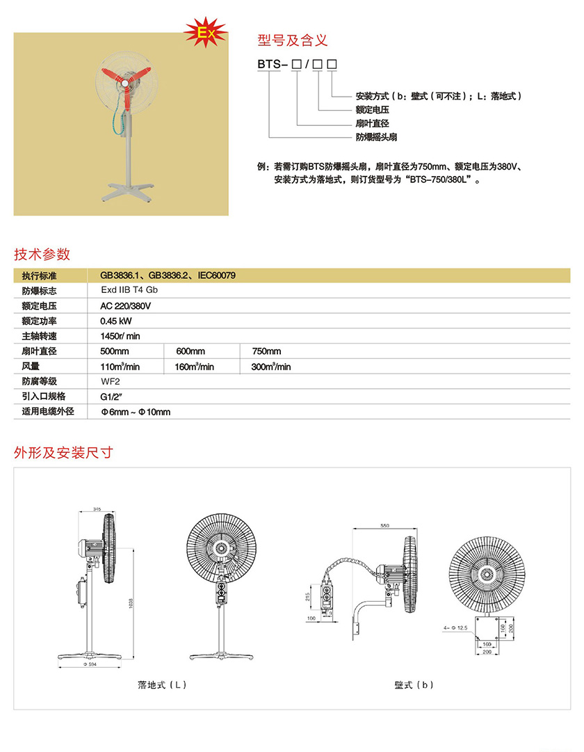 BTS系列防爆摇头扇(IIB、IIC)
