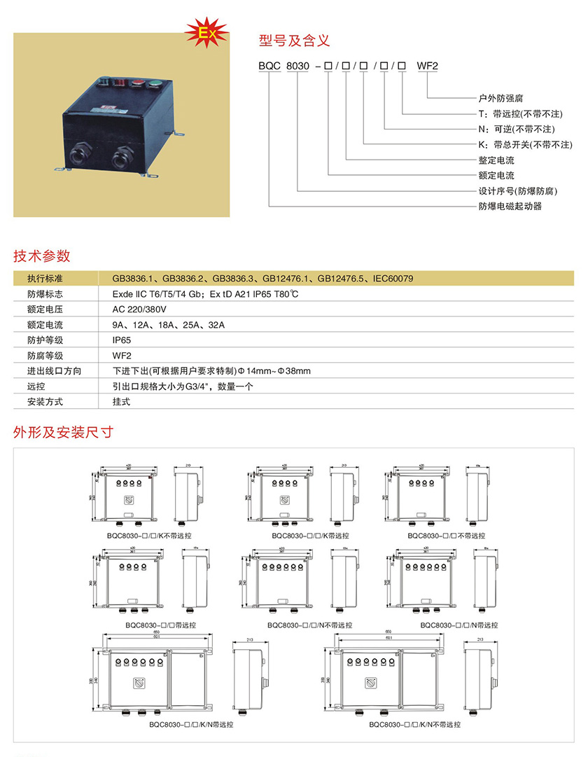 BQC8030系列防爆防腐电磁起动器(IIB、IIC)