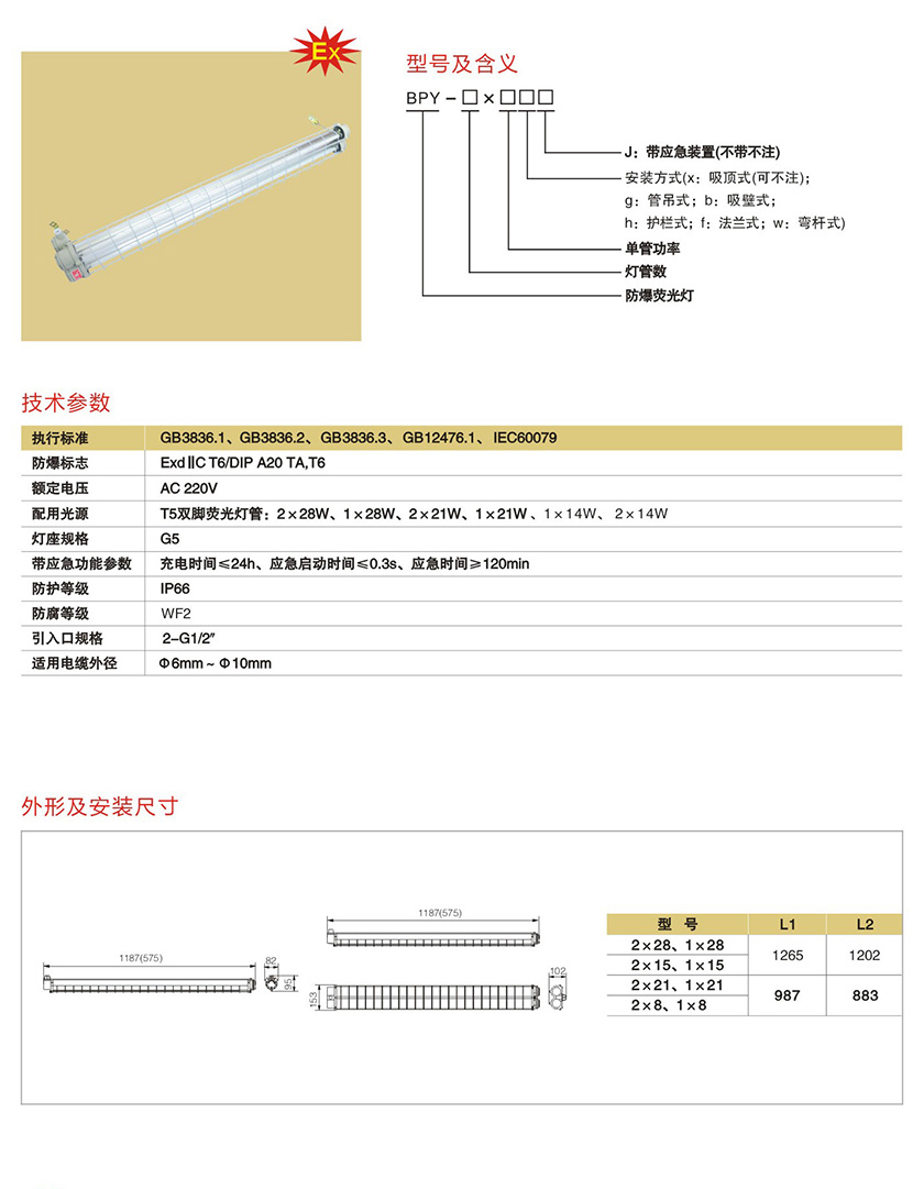 BPY(T5)系列防爆节能高效荧光灯(IIC)