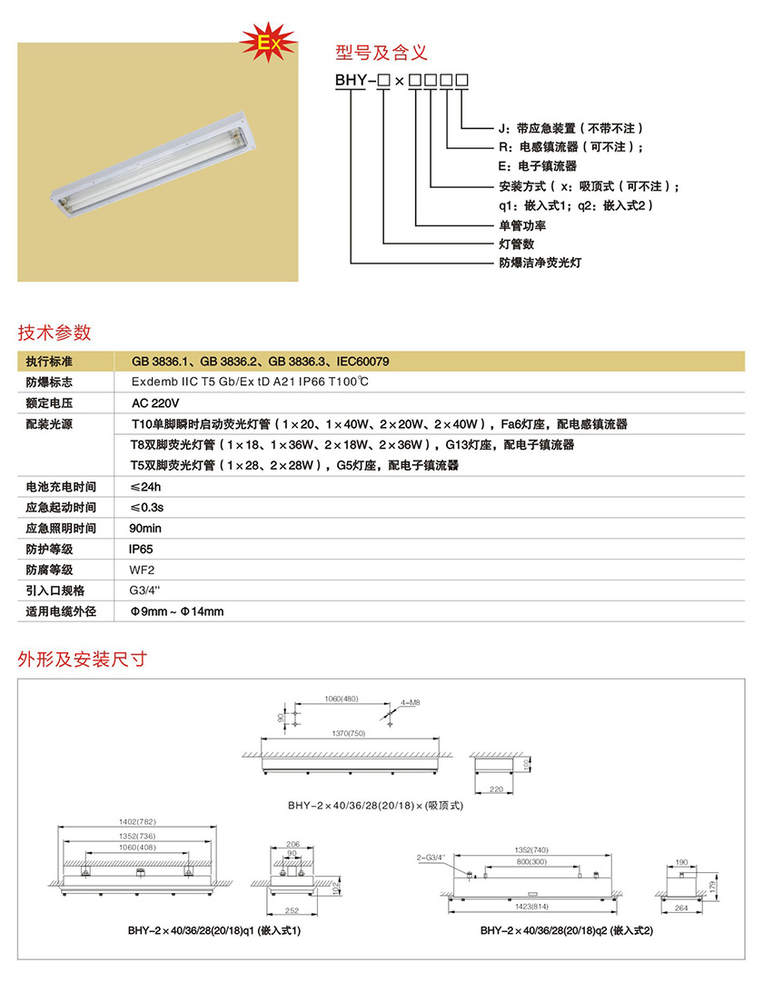 BHY系列防爆洁净荧光灯(IIC)