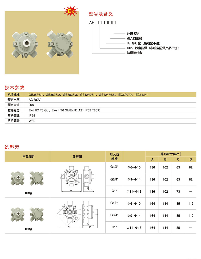 AH系列防爆接线盒(IIB、IIC)