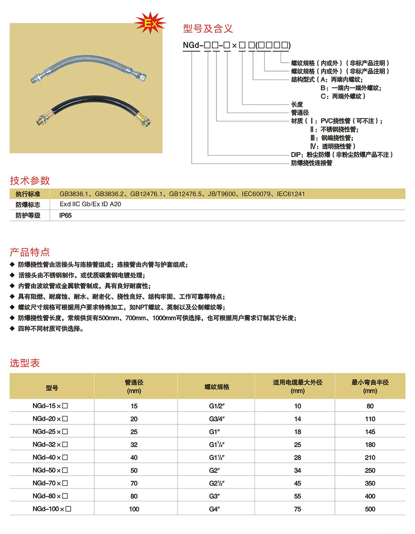 NGd系列防爆挠性连接管(IIB、IIC)
